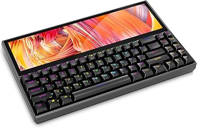 BQAA Mechanical Keyboard, Built-in 12.6 Inch Touchscreen, Compact 71 Keys RGB LED Backlit N-Key Multifunctional Split Screen Keyboard for Mac Windows Android - Black